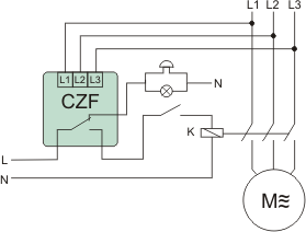 Este proiectat sa monitorizeze cele trei faze pentru a proteja motoarele electrice trifazate impotriva caderii de tensiune in cel putin o faza sau impotriva asimetriei tensiunii intre faze sau impotriva defectarii contactelor, care ar putea deteriora motorul.