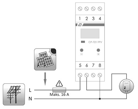 Releul de tensiune monofazat CP-721-FPV este dedicat pentru sistemele fotovoltaice.