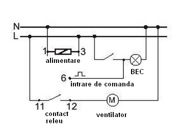 Aplicarea tensiunii S de control la releu declanseaza activarea si automat conectarea tensiunii R la receptorul controlat. Dupa deconectarea tensiunii de control, functionarea a dispozitivului receptor controlat se pastreaza pentru timpul t (presetat cu potentiometru). Dupa ce timpul t a fost cronometrat, receptorul controlat este oprit automat. Daca controlul tensiunii S este reconectata inainte de expirarea timpului presetat, releul va repeta secventa sa de functionare.